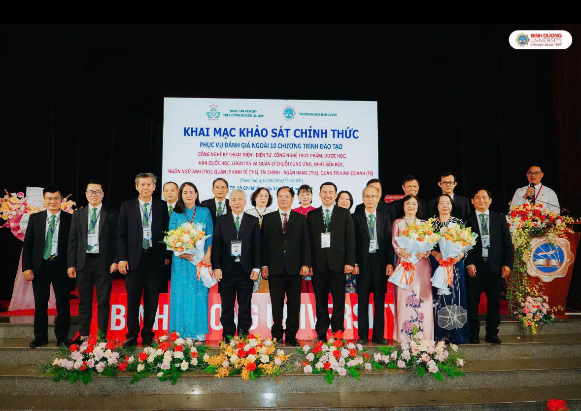 Lễ khai mạc khảo sát chính thức kiểm định 10 chương trình đào tạo tại Trường Đại học Bình Dương diễn ra trong không khí trang trọng, thể hiện quyết tâm xây dựng môi trường giáo dục chất lượng cao, lấy người học làm trung tâm, gắn đào tạo với nhu cầu xã hội.