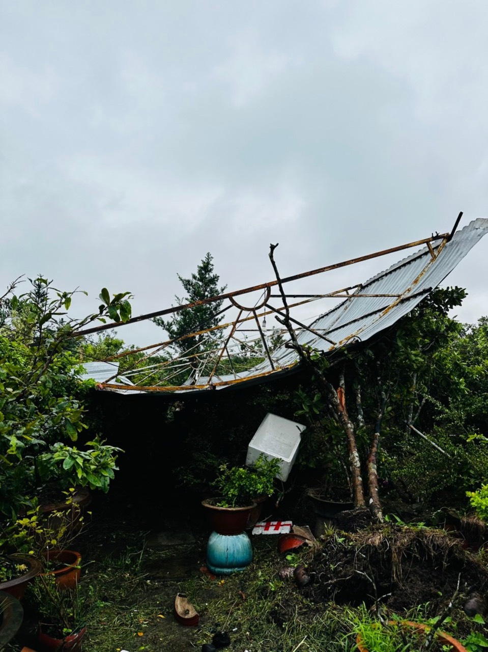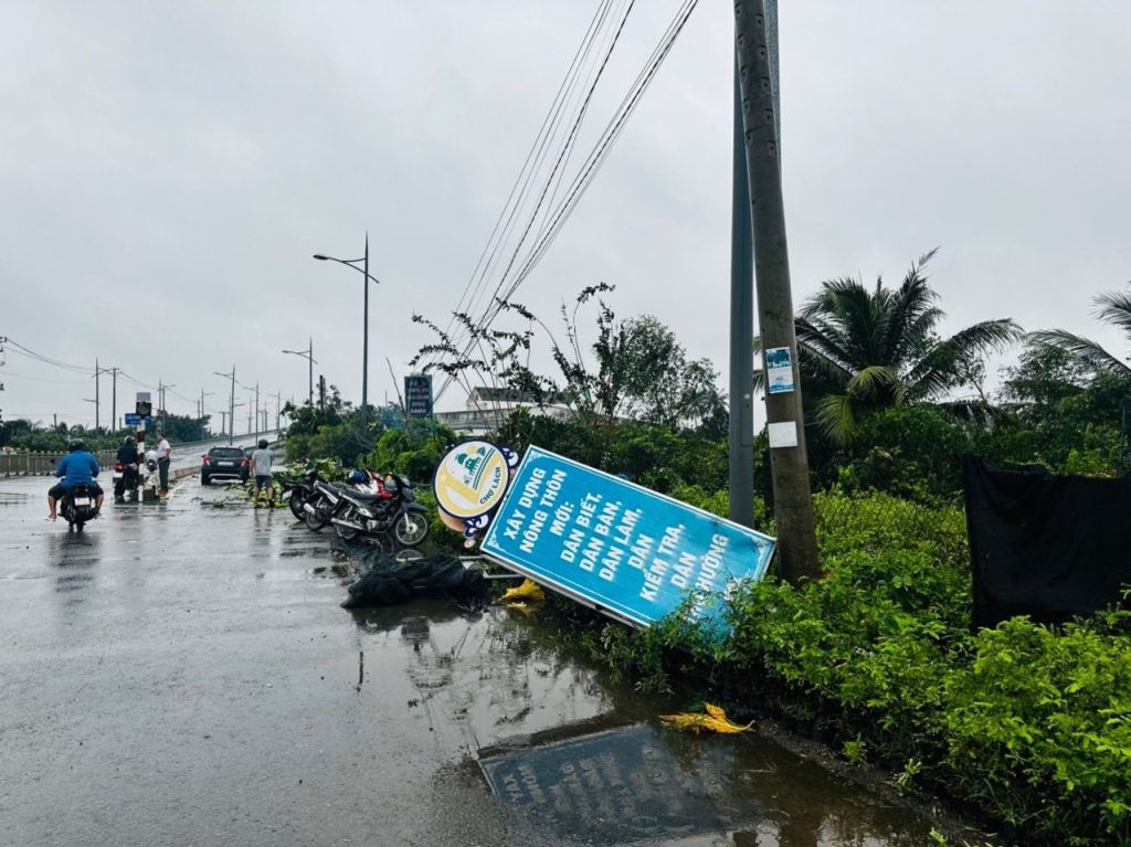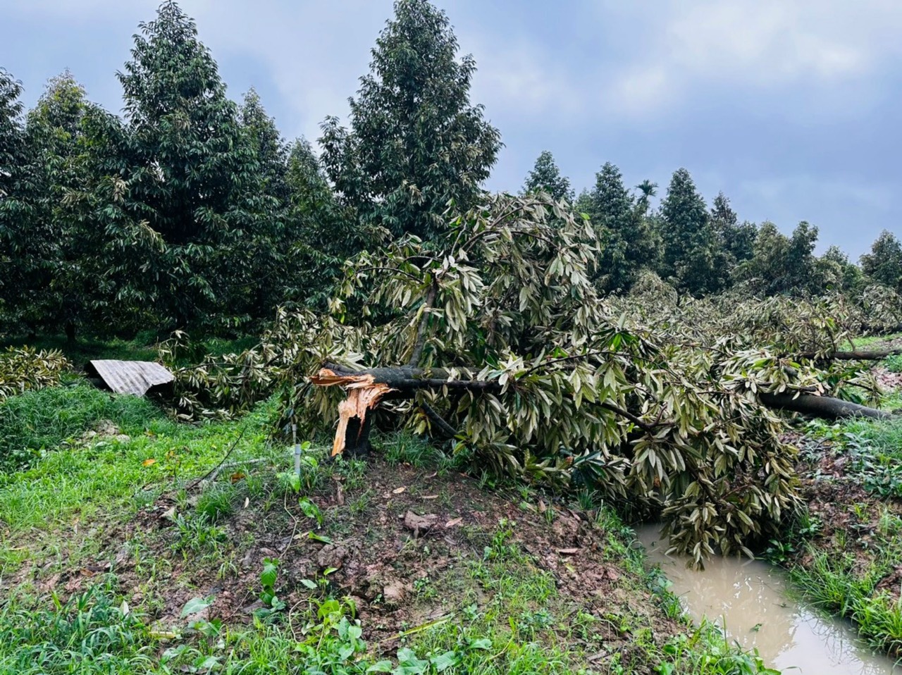 Ngoài ra thiên tai còn gây đổ ngã nhiều vườn cây ăn trái, hoa màu bị ngập nước, sập giàn lưới các trại cây giống, hư hỏng lưới trung thế, nhiều biển báo quảng cáo. Thống kê có 1ha sầu riêng từ 5-6 năm tuổi bị bật gốc không thể phục hồi được. 3ha cây trồng khác bị bật gốc, gãy cành…, khả năng phục hồi 1,5/3ha. 15 nhà lưới, diện tích hơn 15.000m2 bị sập. Thiệt hại khác: Hư 1 phần lưới trung thế. Nhiều biển báo quảng cáo, thiệt hại vật chất khác do mưa làm ước thiết bị khi tốc mái.