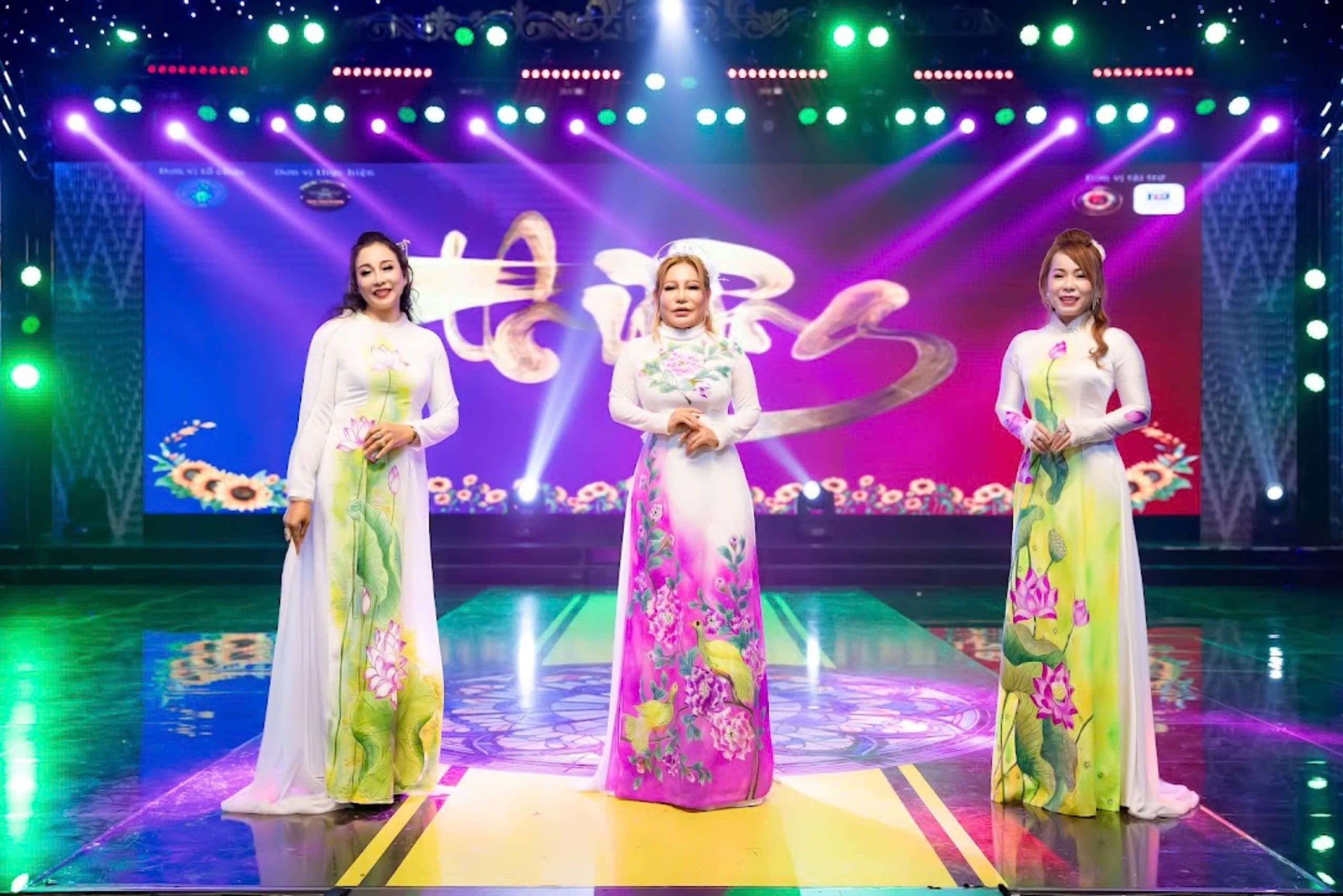 NTK – Hoạ Sĩ Thiên Phước đã cùng với các nữ doanh nhân thành đạt đêm đến góp phần văn nghệ cho chương trình với bộ sưu tập áo dài hoa sen thật ấn tượng.