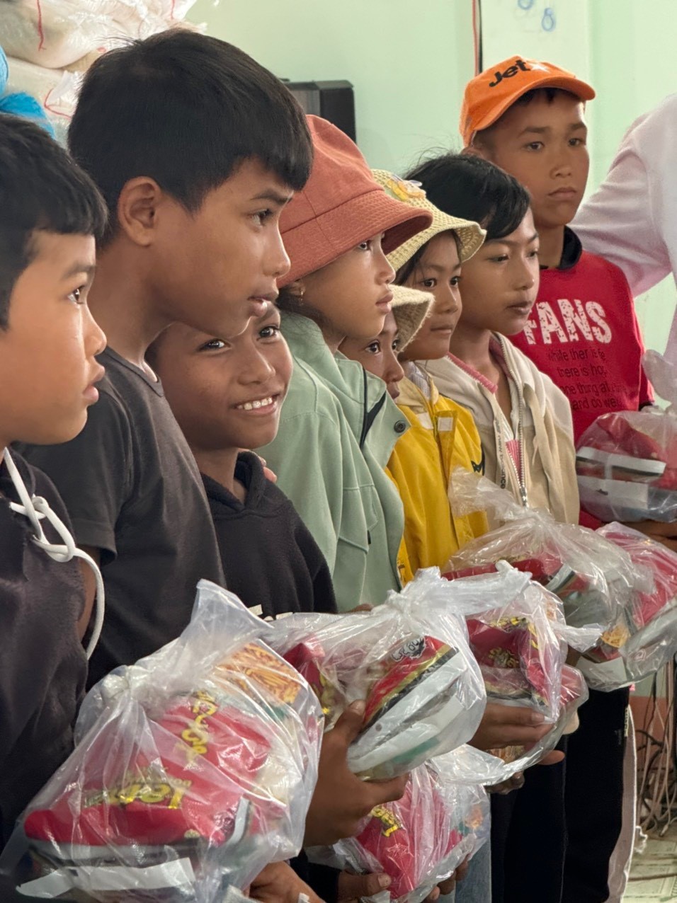 Mỗi phần quà được chuẩn bị kỹ lưỡng và đầy đủ các nhu yếu phẩm như gạo, mì gói, nước mắm, dầu ăn, nước tương, đường, bột nêm và bột ngọt, đảm bảo đáp ứng nhu cầu cơ bản trong cuộc sống hàng ngày của người dân. Đặc biệt, phần quà dành cho trẻ em được thiết kế với sự cẩn thận, bao gồm các món đồ chơi và đồ ăn phù hợp với độ tuổi, nhằm mang đến niềm vui và sự ấm áp cho các em nhỏ.