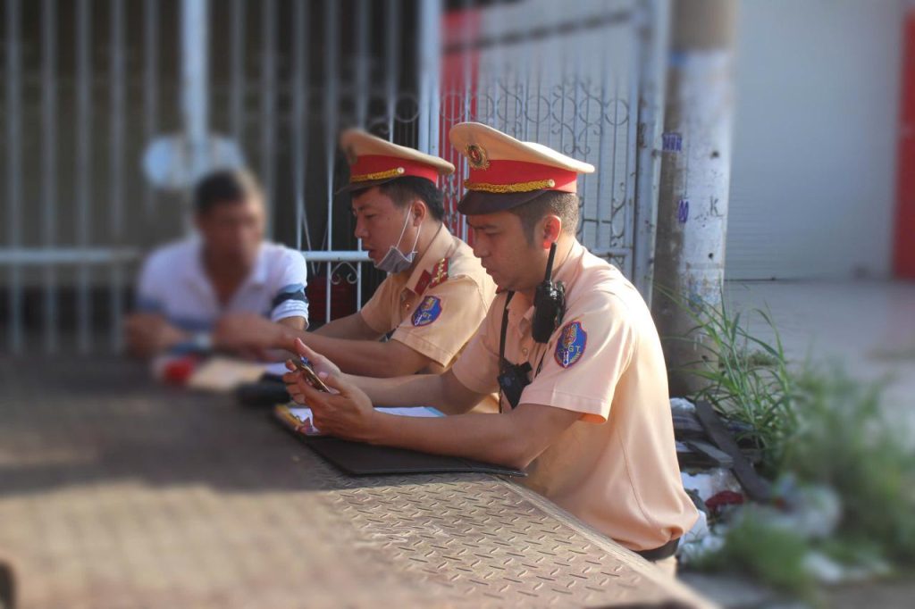 Lực lượng CSGT lập biên bản tài xế xe vi phạm