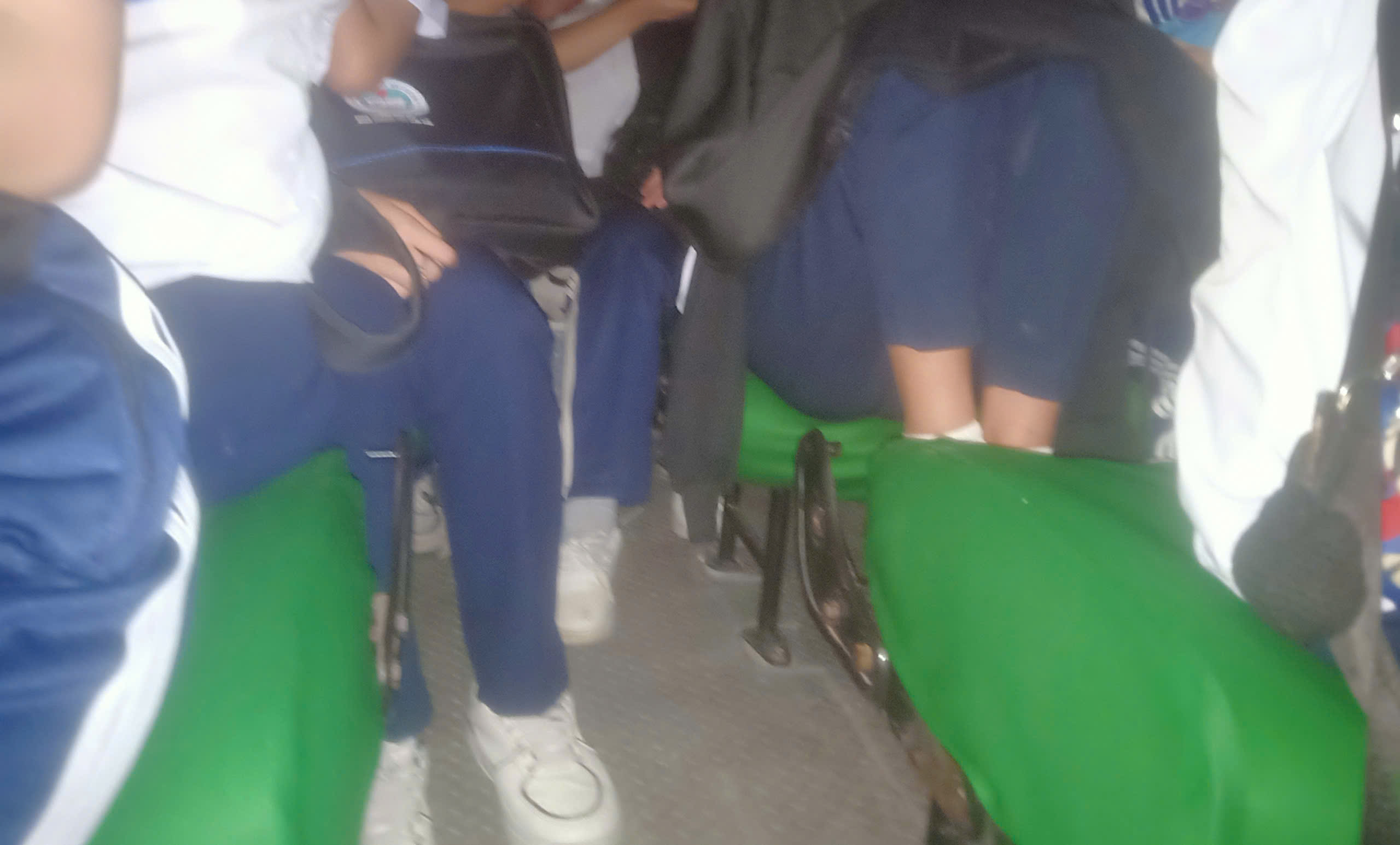 Những hàng ghế trên xe học sinh ngồi đều không có tựa lưng