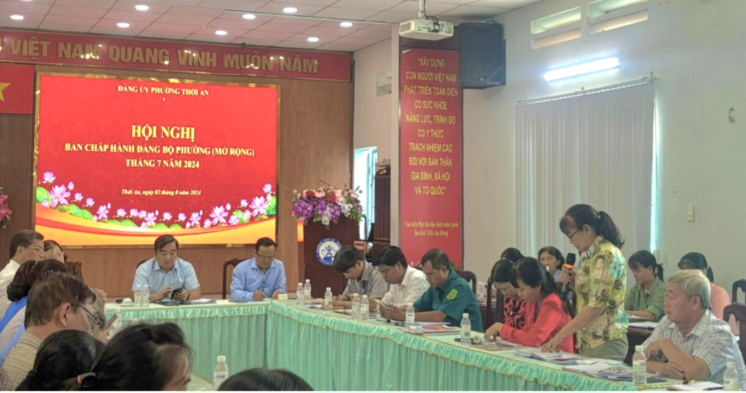 Chiều ngày 02/02/2024, Đảng ủy phường Thới An đã tổ chức Hội nghị Ban Chấp hành Đảng bộ phường mở rộng tháng 7 năm 2024. Đánh giá kết quả thực hiện tháng 7 và triển khai phương hướng, nhiệm vụ tháng 8 năm 2024.