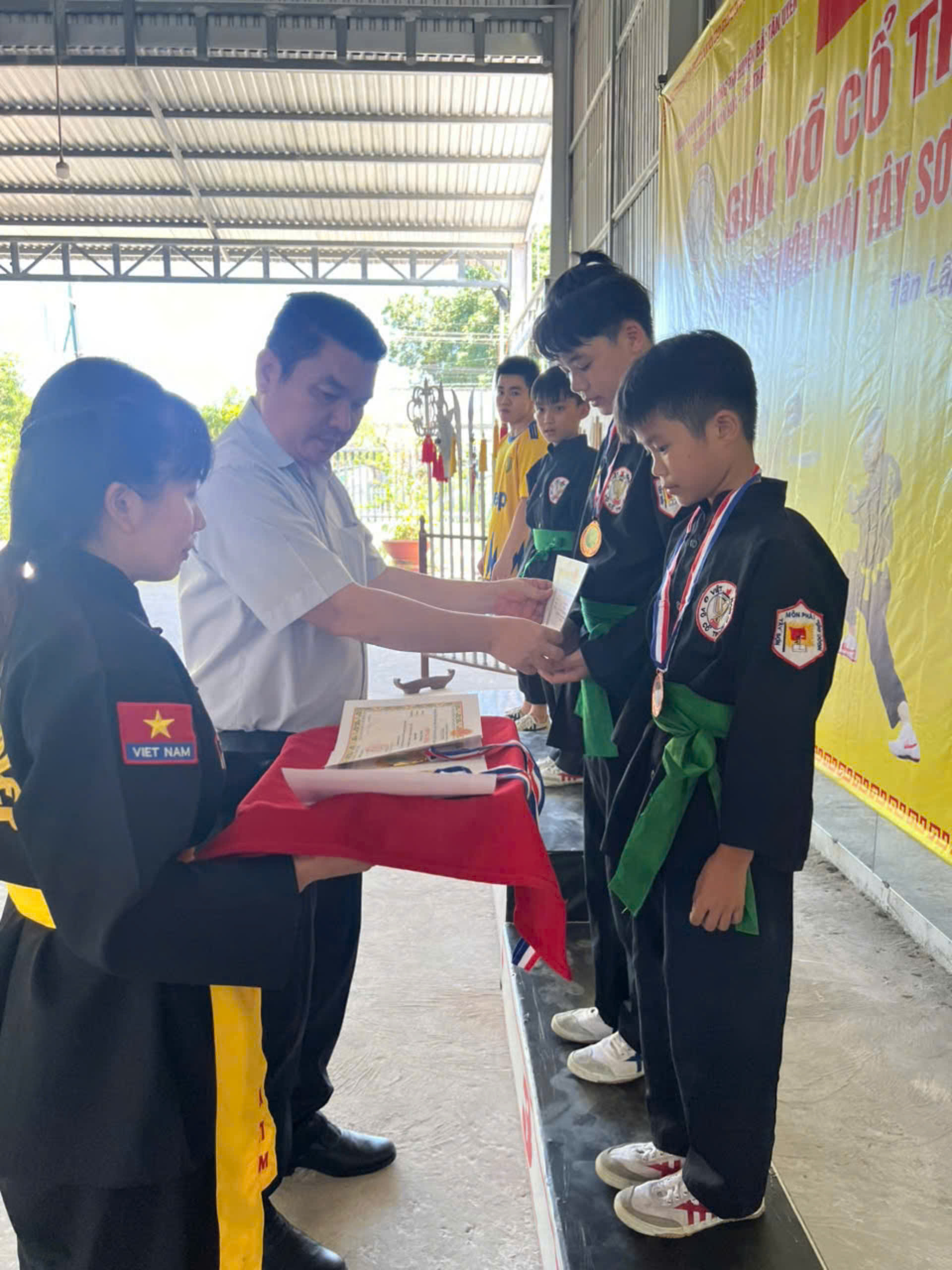 Ông Võ Đình Bình – Trưởng bộ môn VCT TP. Thuận An trao giấy khen và huy chương cho các VĐV có thành tích tốt tại giải đấu.