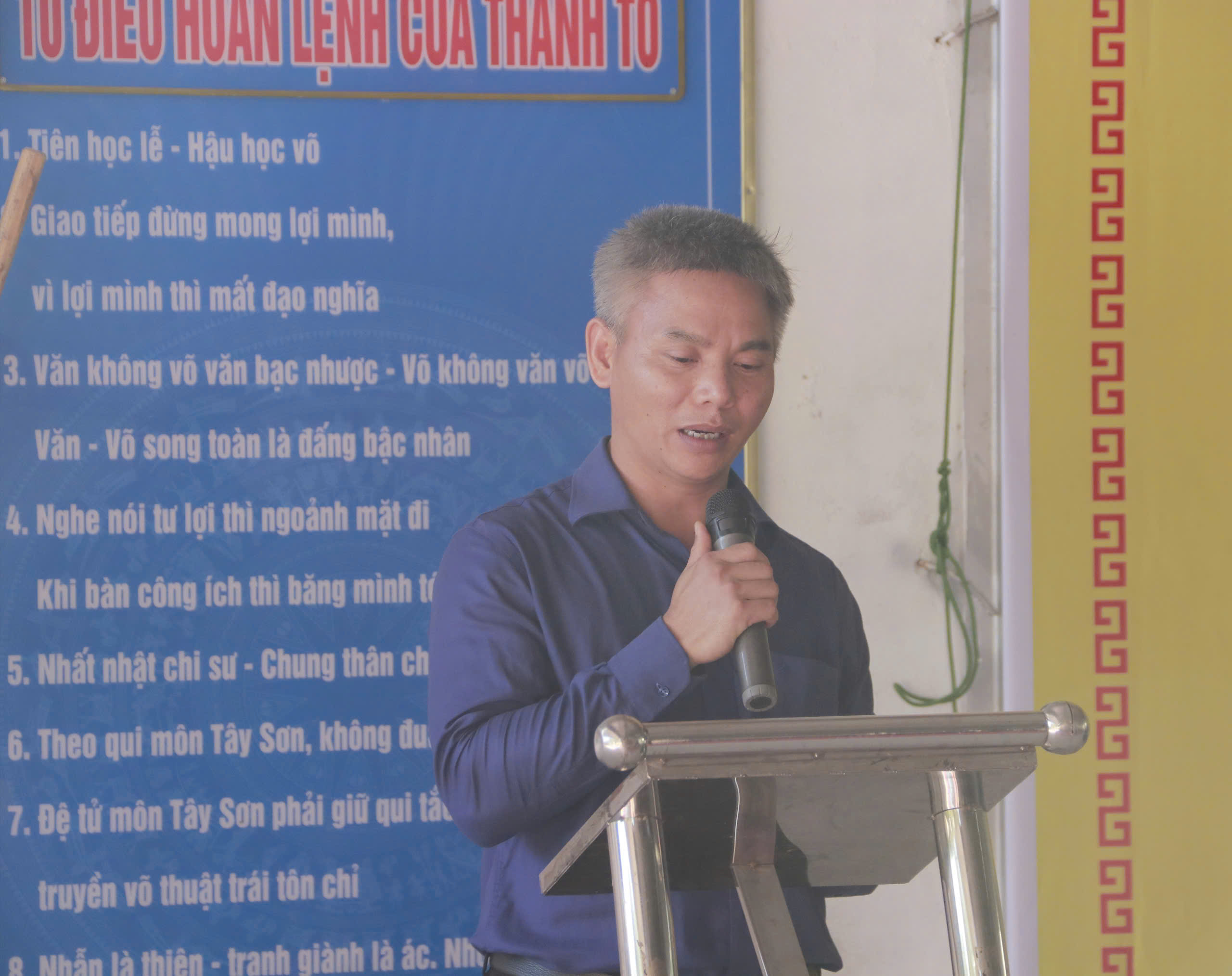 Ông Kim Sơn Đình Trưởng môn phái Tây Sơn Ngọc Điệp – phát biểu tại buổi lễ cup các CLB Võ cổ truyền năm 2024