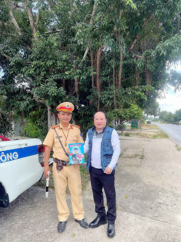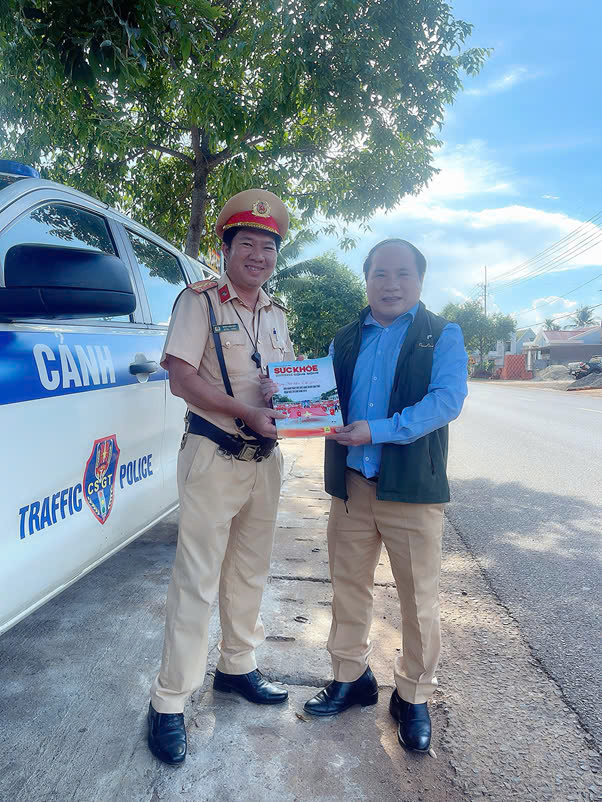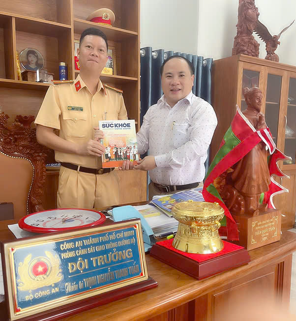 Trao tặng Tạp Chí Sức Khoẻ cộng đồng cho đồng chí Trịnh Nguyễn Thanh Tuấn, Đội trưởng đội CSGT Hàng Xanh, Phòng CSGT đường bộ, CA TP. HCM tích cực hỗ trợ hành trình xuyên Việt vì sức khỏe công đồng