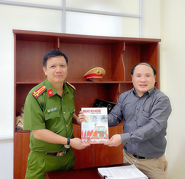 Tặng Tạp chí Sức Khoẻ cộng đồng cho đồng chí Đinh Văn Điện, Cán bộ tiêu biểu Phòng HDTTKSGTĐB, Cục CSGT đường Bộ Đường Sắt, Bộ Công An