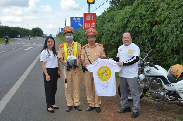 Trưởng phòng CSGT Công an tỉnh Đăk Lăk đồng hành nhiệt tình chương trình hành trình xuyên Việt vì sức khỏe cộng đồng “mỗi chữ ký nhắc nhở mọi người không uống rượu bia khi tham gia giao thông”