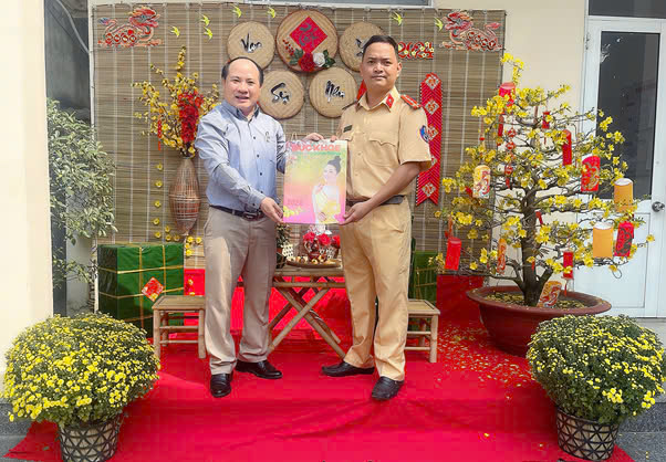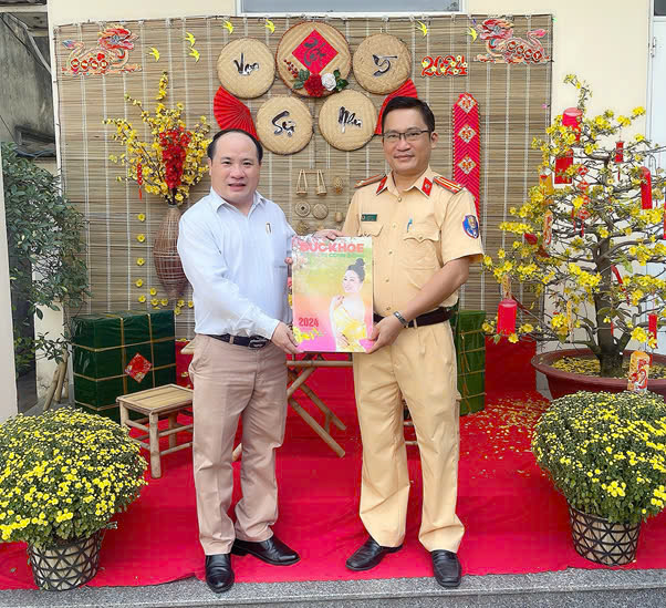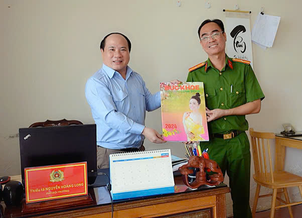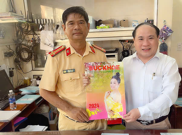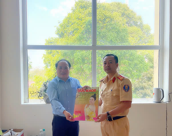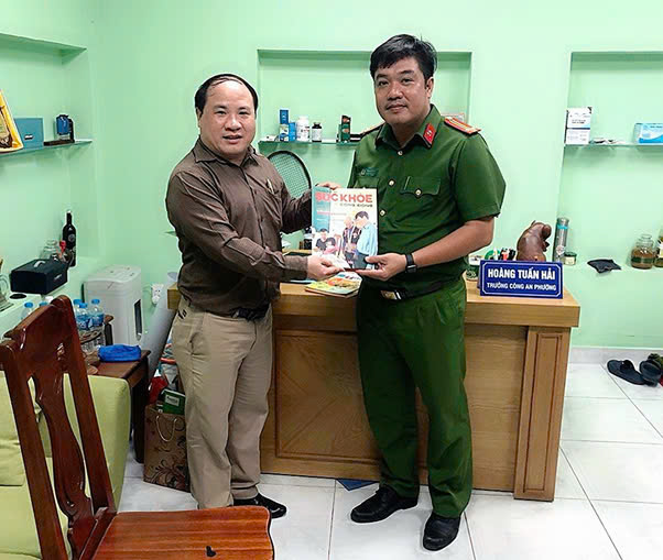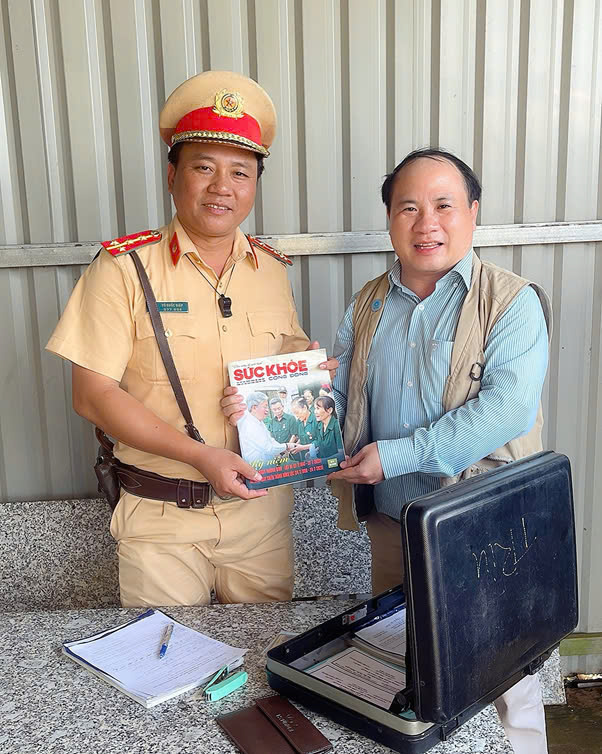 Tặng Tạp chí Sức Khoẻ cộng đồng cho đồng chí Đinh Văn Điện, Cán bộ tiêu biểu Phòng HDTTKSGTĐB, Cục CSGT đường Bộ Đường Sắt, Bộ Công An