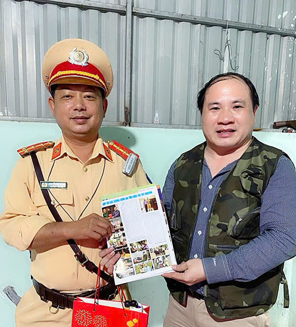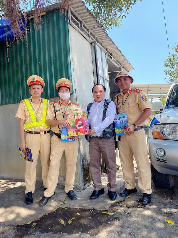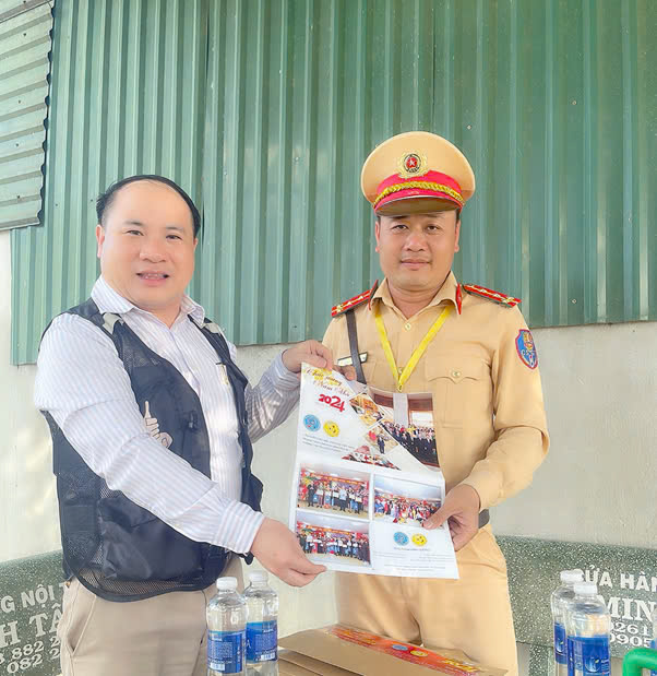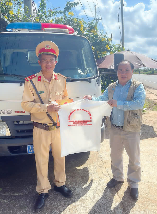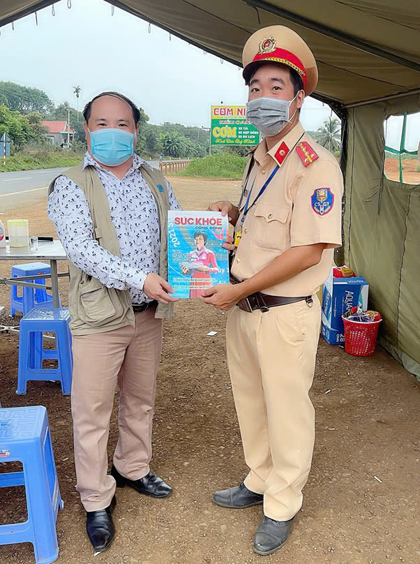 Trao tặng Tạp Chí Sức Khoẻ cộng đồng cho đồng chí Trịnh Nguyễn Thanh Tuấn, Đội trưởng đội CSGT Hàng Xanh, Phòng CSGT đường bộ, CA TP. HCM tích cực hỗ trợ hành trình xuyên Việt vì sức khỏe công đồng