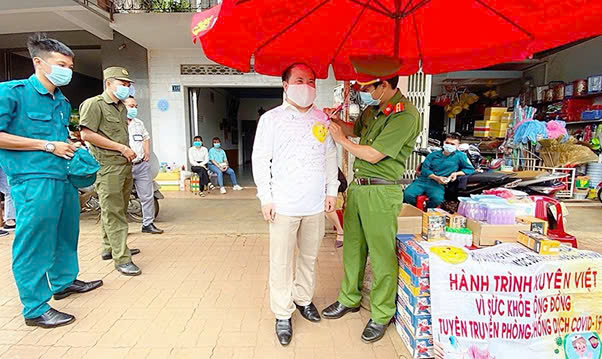 Đồng chí Đinh Văn Quy, Cán bộ Chiến sĩ Phòng CSGT đường bộ CA tỉnh Đăk Nông hỗ trợ tính vực hoạt động hành trình xuyên Việt vì sức khỏe cộng đồng