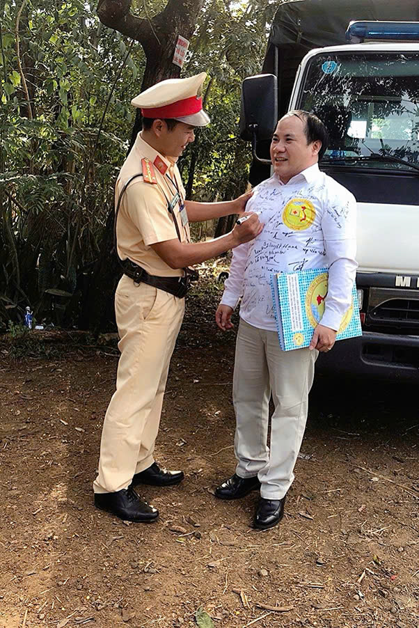 Trưởng phòng CSGT Công an tỉnh Đăk Lăk đồng hành nhiệt tình chương trình hành trình xuyên Việt vì sức khỏe cộng đồng “mỗi chữ ký nhắc nhở mọi người không uống rượu bia khi tham gia giao thông”