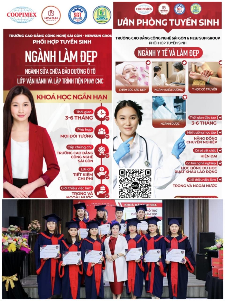 Không ngoài mục đích tạo ra các giá trị vững bền cho xã hội và cộng đồng chăm sóc sắc đẹp, Newsun Group luôn hướng đến sự đa dạng trong các ngành nghề hoạt động. Một trong những lĩnh vực được tập đoàn chú trọng đầu tư và phát triển trong thời gian gần đây là đào tạo nguồn nhân lực trong ngành thẩm mỹ sắc đẹp thông qua nhiều đợt tuyển sinh đào tạo liên tục, hướng đến đối tượng là các bạn sinh viên các trường Cao đẳng và các chị em phụ nữ muốn thay đổi tư duy và trí tuệ vững bước trên đôi chân của mình . Với mục tiêu đào tạo định hướng nghề nghiệp cho các chị em phụ nữ mọi lứa tuổi , nhằm mục đích với mục tiêu tạo ra các thế hệ kế cận vừa có kiến thức, giỏi chuyên môn và tay nghề để đáp ứng nhu cầu làm đẹp ngày càng tăng như hiện nay.