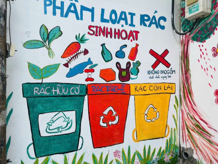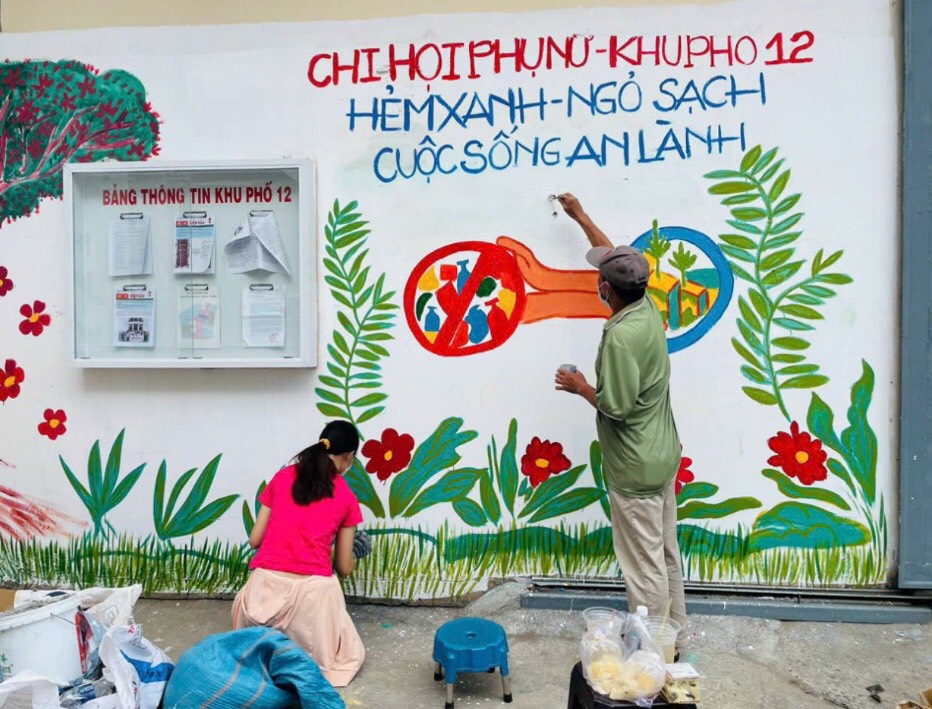 Theo đó, Chi hội Phụ nữ khu phố 12 phối hợp với các ban ngành, đoàn thể của khu phố tổ chức phổ biến, giới thiệu, vận động người dân về tầm quan trọng của việc phân loại chất thải rắn sinh hoạt tại nguồn, rác tái chế, tái sử dụng, giảm lượng chất thải rắn sinh hoạt phát sinh, làm ảnh hưởng xấu đến môi trường, đồng thời hướng dẫn giúp người dân hình thành thói quen phân loại và thải bỏ rác đúng quy định. Chi hội Phụ nữ khu phố 12 đã có sáng kiến tuyên truyền pháp luật về môi trường bằng hình ảnh, tranh vẽ sinh động, có nội dung gần gũi, thiết thực trong cuộc sống hàng ngày trên bức tường thuộc địa bàn khu phố, do chính tay các chị sơn phết, kẻ vẽ:” Hãy phân loại rác trước khi bỏ rác”, “Người văn minh không xả rác linh tinh”, thực hiện phân loại rác với các thùng rác màu sắc khác nhau, có hình hành minh hoạ cho 3 thùng rác: Thùng rác hữu cơ có màu xanh, gồm: rau, củ, quả, xương cá…; Thùng rác tái chế màu đỏ, gồm: vỏ chai nhựa, hộp giấy, túi xách…, Thùng rác còn lại có màu vàng, phía trên nắp thùng rác có dòng chữ “không bao gồm chất thải nguy hại”, để người dân dễ nhận biết, dễ thực hiện, có hình vẽ mô tả việc trồng, chăm sóc cây xanh ở xung quanh nhà hoặc nơi đất trống để tạo mảng xanh.