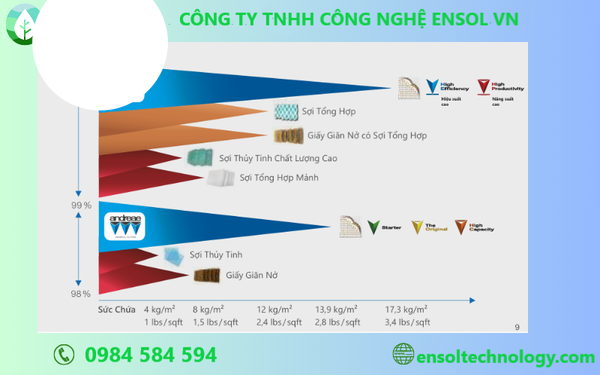 Bảng hiệu quả và tải trọng của bộ lọc Andreae – The Original đối với từng loại sơn |