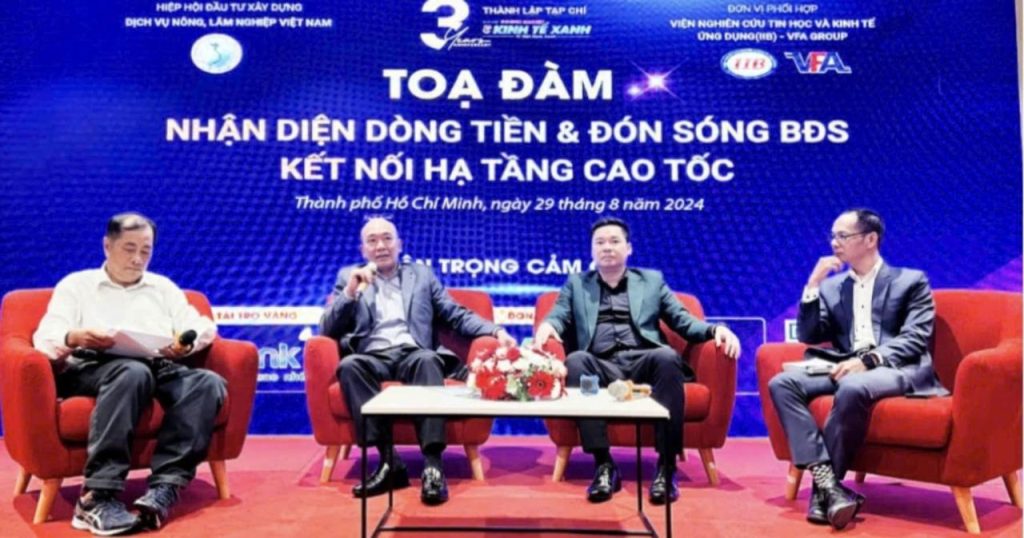 Tọa đàm “ Bất động sản đón sóng kết nối hạ tầng cao tốc” với sự tham dự của đại diện lãnh đạo Hiệp hội Đầu tư Xây dựng Dịch vụ Nông Lâm nghiệp Việt Nam, Phó Tổng Biên tập Tạp chí Doanh nghiệp và Kinh tế xanh- Ông Nguyễn Mạnh Thắng, cùng với các lãnh đạo đơn vị của ngành bất động sản tại TP.Hồ Chí Minh. Bên cạnh đó có các chuyên gia là những diễn giả uy tín, có kinh nghiệm và kiến thức sâu rộng về thị trường bất động sản phía Nam, gồm: TS Đinh Thế Hiển – Viện trưởng Viện NC Tin học & Kinh tế ứng dụng; TS Sử Ngọc Khương- Phó Viện Trưởng IIB; MBA Nguyễn Hoàng- Chuyên gia Bất động sản; ông Phạm Trọng Phú- Giám đốc công ty Titanium.