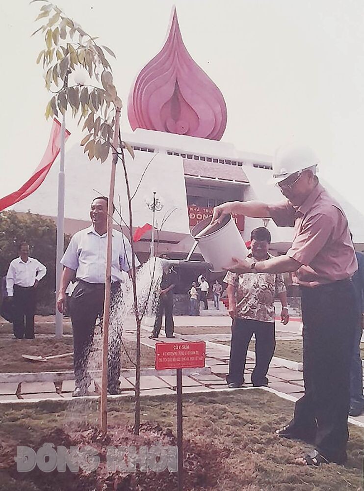 Tổng Bí thư Nguyễn Phú Trọng trồng cây lưu niệm nhân chuyến về thăm và làm việc tại xã Định Thủy, huyện Mỏ Cày Nam, ngày 27-4-2010. Ảnh: Ngọc Thạch