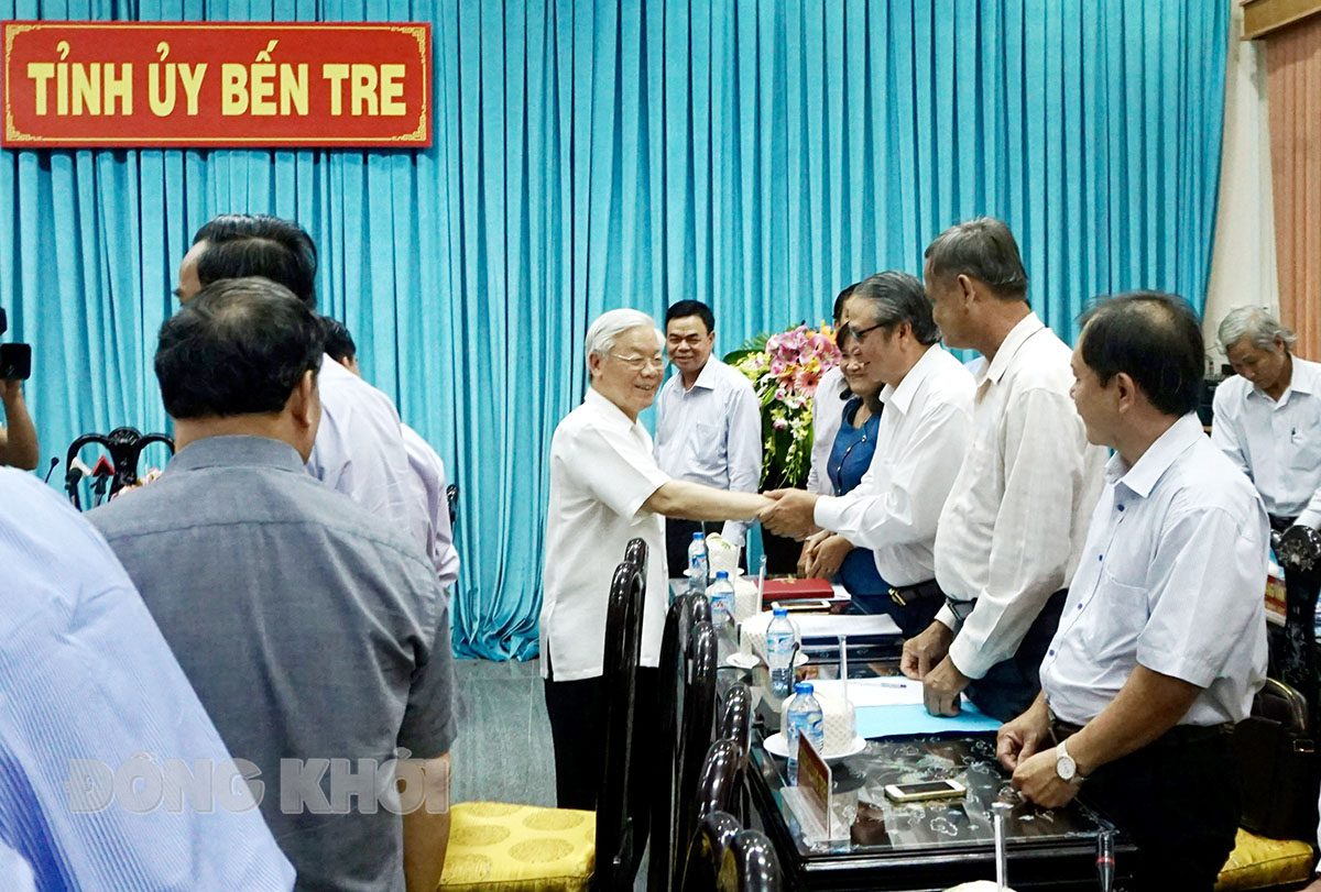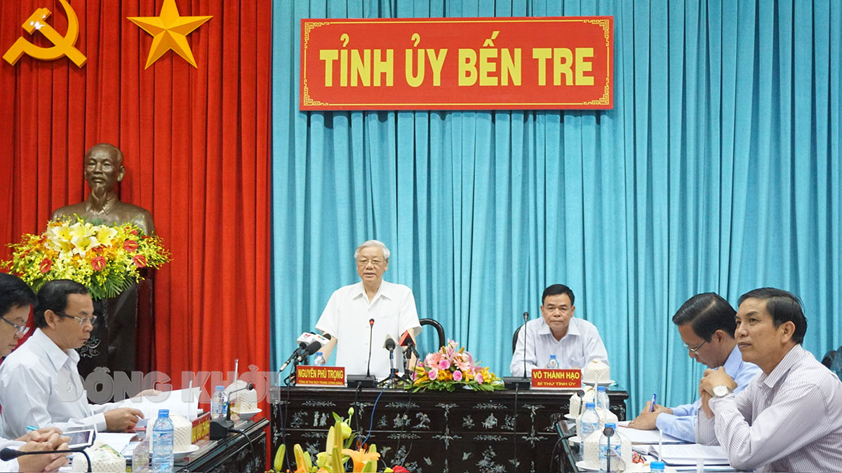 Trong thời gian từ năm 2010 – 2016, đồng chí Tổng Bí thư Nguyễn Phú Trọng đã có 2 lần đến thăm và làm việc tại Bến Tre. Cả 2 lần đồng chí đều quan tâm, dành nhiều tình cảm cho cán bộ, đảng viên và nhân dân quê hương Đồng khởi.