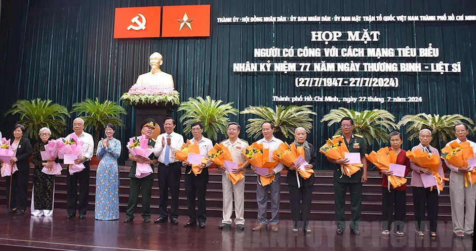 Sáng 27/7, Thành ủy – HĐND – UBND – Ủy ban MTTQ Việt Nam TPHCM tổ chức họp mặt người có công với cách mạng tiêu biểu, nhân kỷ niệm 77 năm Ngày Thương binh – Liệt sĩ (27/7/1947 – 27/7/2024).