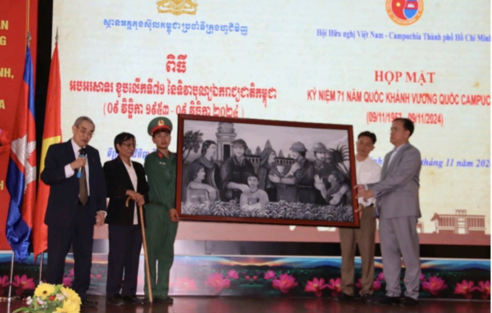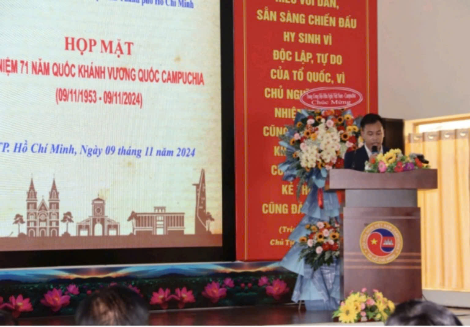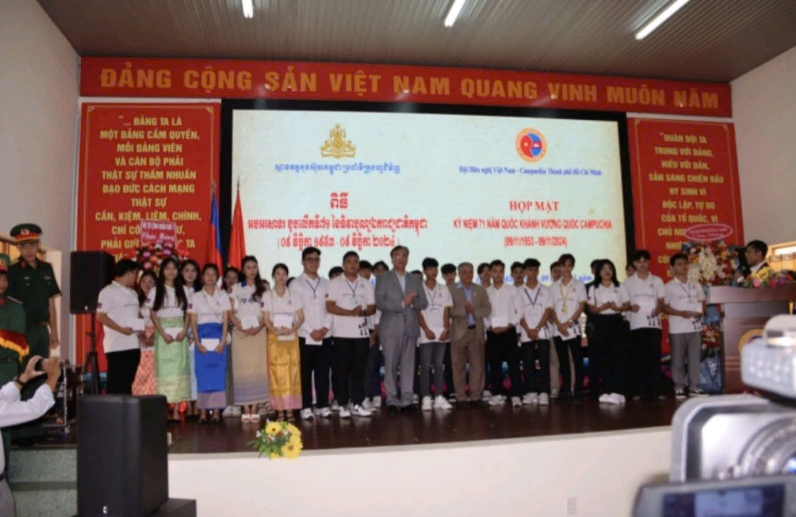 Sáng ngày 9/11, tại Thành phố Hồ Chí Minh, Hội Hữu nghị Việt Nam -Campuchia Thành phố Hồ Chí Minh đã tổ chức buổi họp mặt trọng thể nhân dịp kỷ niệm 71 năm Quốc khánh Vương quốc Campuchia (9/11/1953 – 9/11/2024). Tham dự có: Trung tướng Nguyễn Văn Nam, Uỷ viên Ban Thường vụ Thành ủy, Tư lệnh Bộ Tư lệnh Thành phố Hồ Chí Minh, Chủ tịch Hội Hữu nghị Việt Nam – Campuchia Thành phố Hồ Chí Minh; Tiến sĩ Lê Hồng Liêm – nguyên Phó Chủ nhiệm Uỷ Ban Kiểm tra Trung ương Đảng, Phó Chủ tịch Trung ương Hội Hữu nghị Việt Nam – Campuchia (Thường trực phía Nam) cùng nhiều lãnh đạo, đại diện các cơ quan, tổ chức, và các cựu quân tình nguyện, cựu chuyên gia Việt Nam giúp Campuchia.