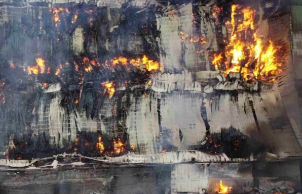 Tại hiện trường nhà xưởng rộng khoảng 300m, bị khói đen và lửa bao trùm lên quanh khu vực, do bên trong chứa nhiều vật liệu dễ cháy và phát ra nhiều tiếng nổ lớn.